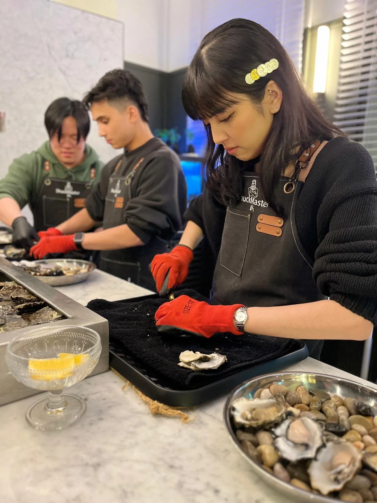 You’ll learn how to safely shuck oysters, open sea urchin. Understanding the produce and freshness, tasting notes of the oyster, and how to pair them with wine & sake.